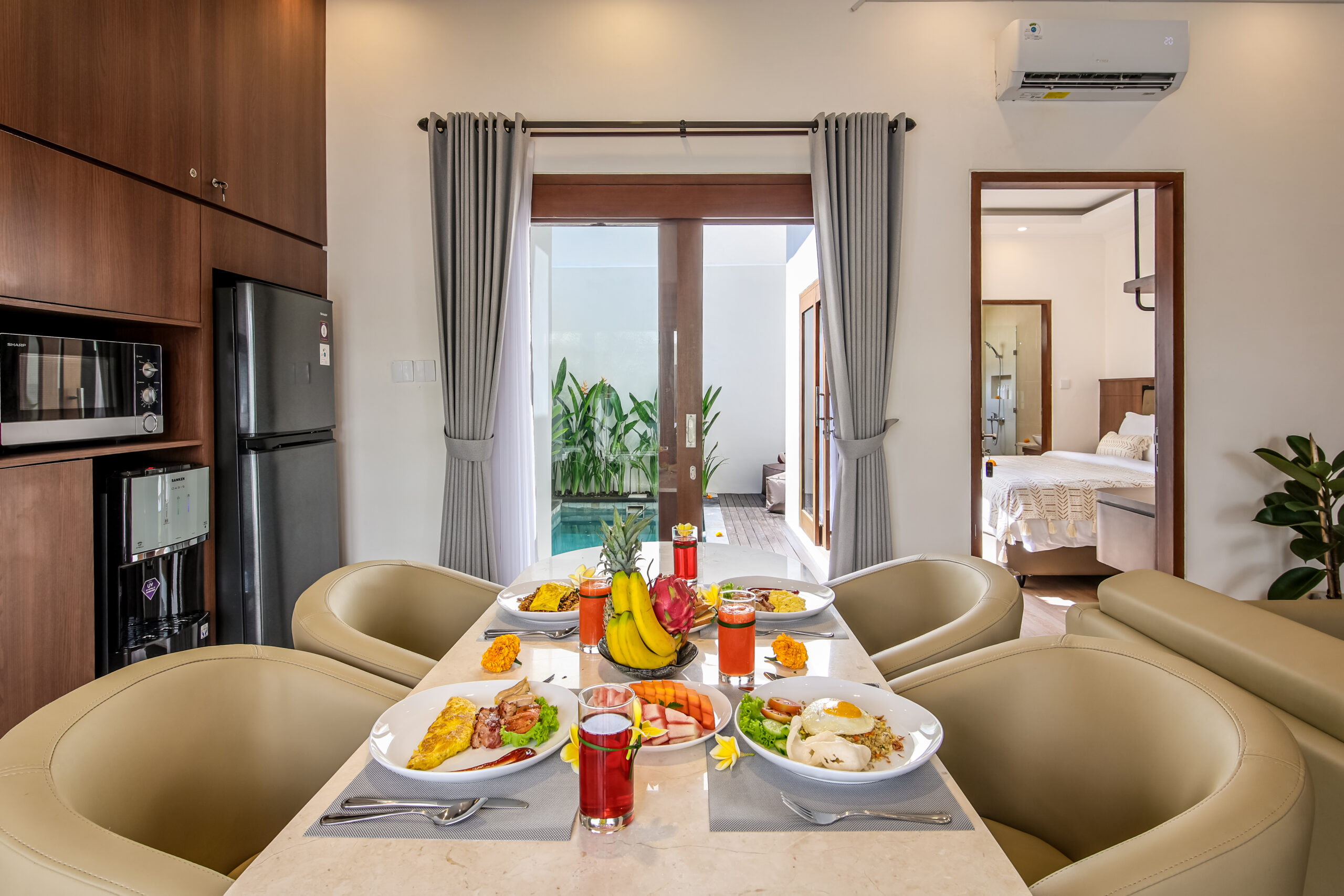 The villa features a private swimming pool, lush tropical garden, open-concept living spaces, and stylish modern amenities designed for relaxation and rejuvenation. From high-speed Wi-Fi and smart TVs to a fully equipped kitchen and comfortable sleeping arrangements, every detail has been carefully curated to ensure an exceptional stay.